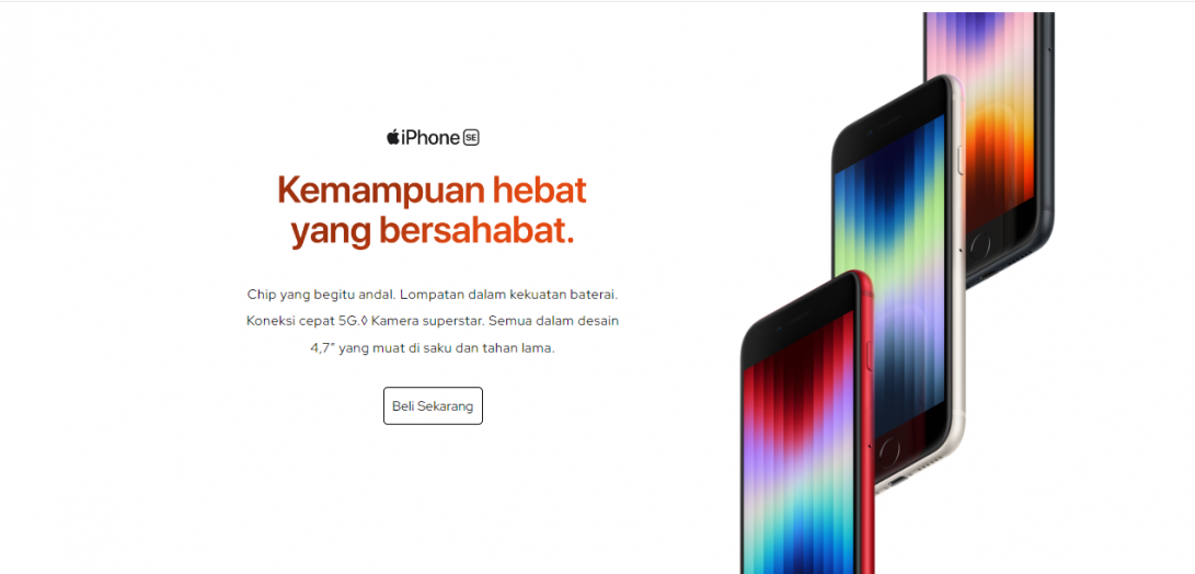 Jakarta, 27 May 2022 – Erajaya Group will offer the powerful and affordable iPhone SE. With impressive upgrades including the A15 Bionic chip, 5G, a new camera system, better battery life, and improved durability with a compact and durable design, iPhone SE is available in three beautiful colours — midnight, starlight, and (PRODUCT)RED.